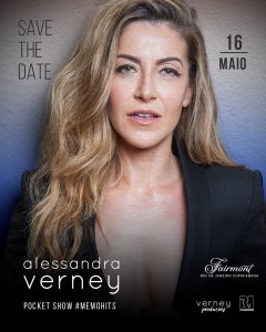 Hoje,16, Alessandra Verney sobe ao palco do Hotel Fairmont, em Copacabana, às 20h, para o seu pocket show #MemoHits. Essa apresentação marca uma série de novidades que estão a caminho, relacionadas ao projeto “Memohits”