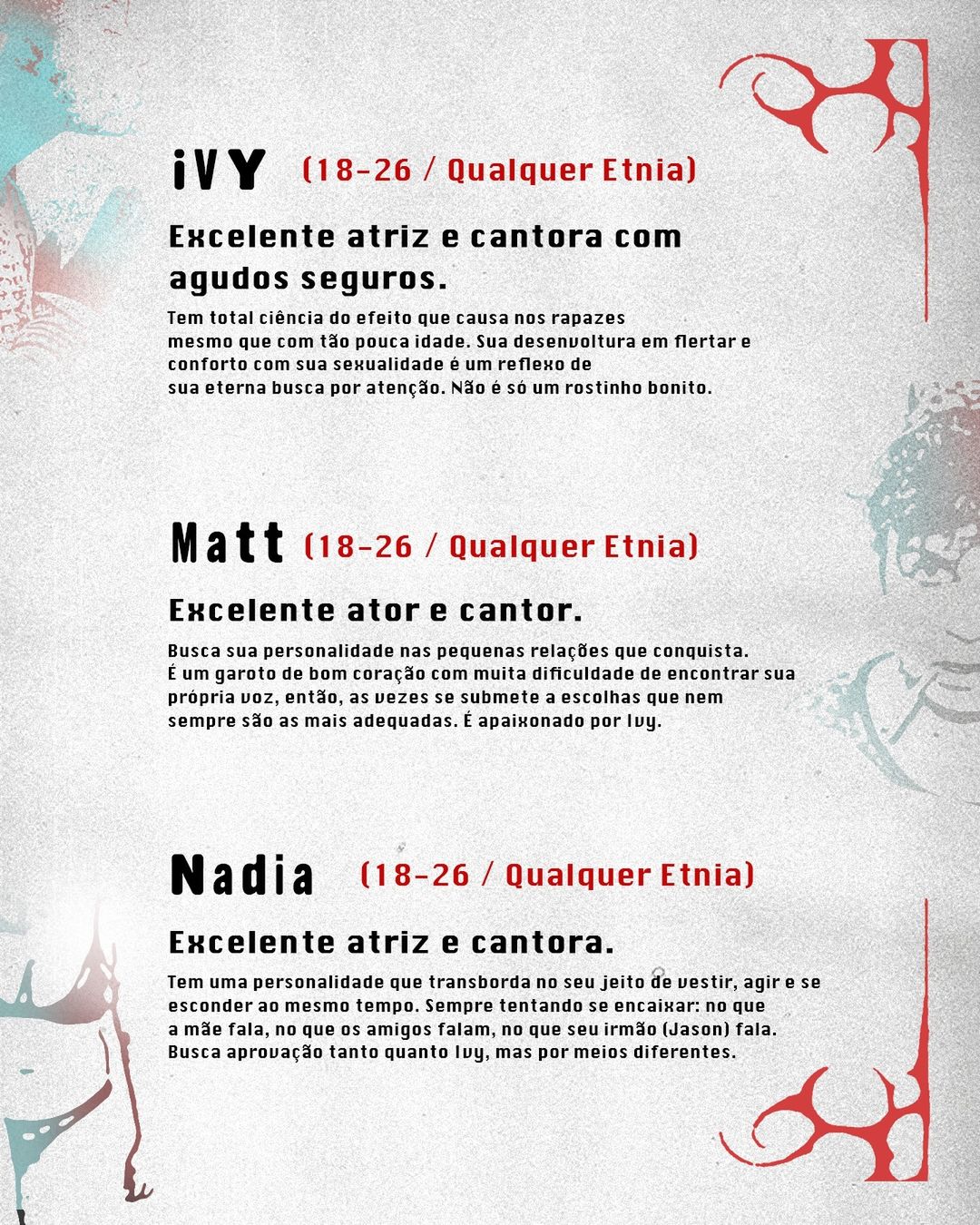 A produção, que terá direção de Diego Montez, direção musical de Jorge de Godoy e coreografias de Gabi Camisotti, busca por jovens talentos, de qualquer gênero e etnia, maiores de 18 anos, que atuem, cantem e tenham facilidade para se movimentar. As audições acontecerão de 16 a 22 de setembro, em São Paulo, e os selecionados participarão de um Workshop entre os dias 05 de outubro a 07 de dezembro, para uma maior imersão na obra de Jon Hartmere e Damon intrabartolo. Já os ensaios terão início em 13 de janeiro de 2025, com término dia 31 de março.