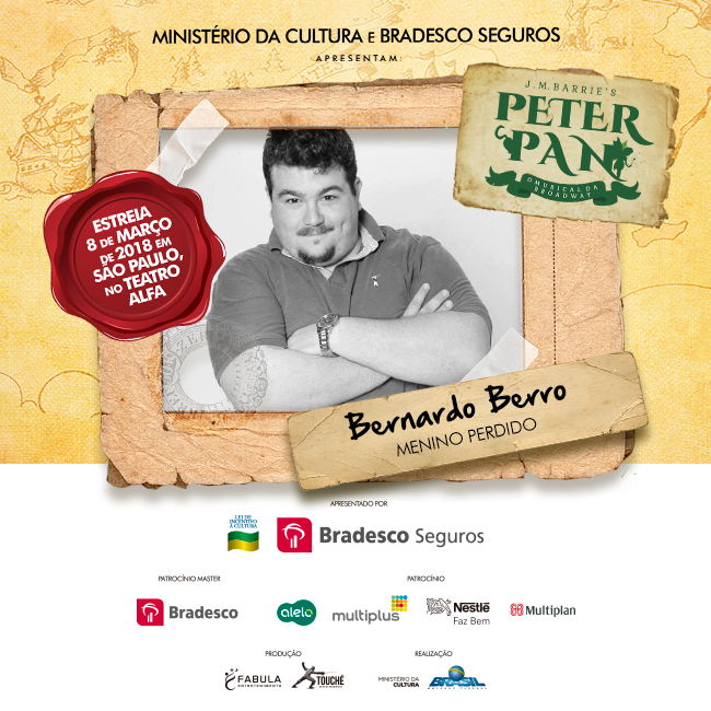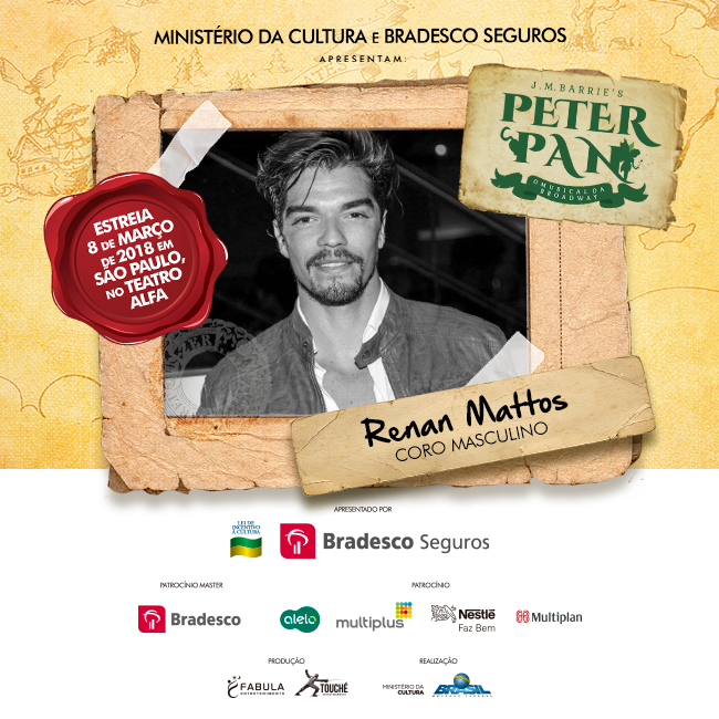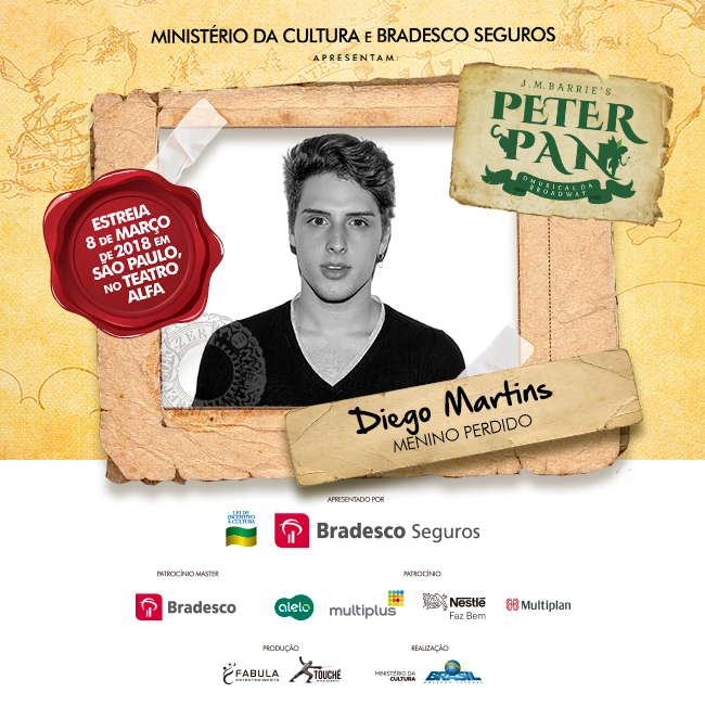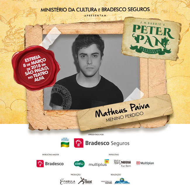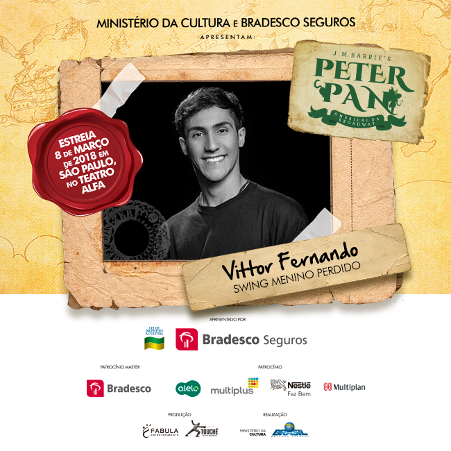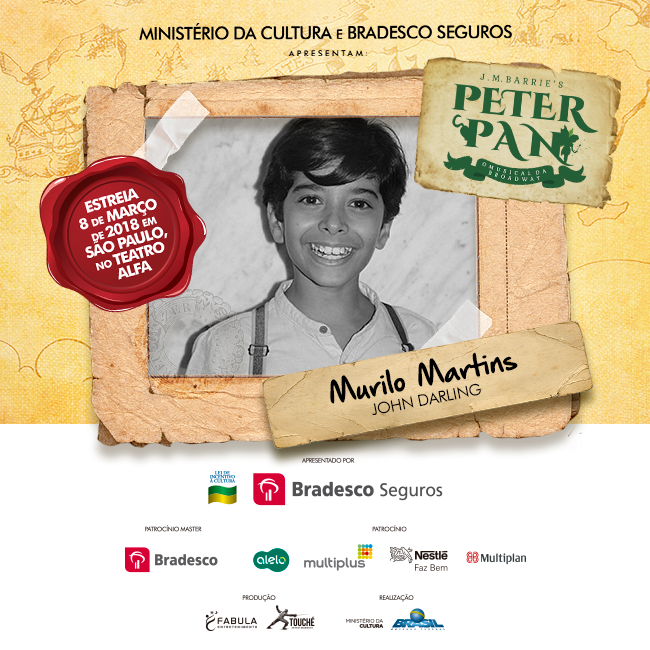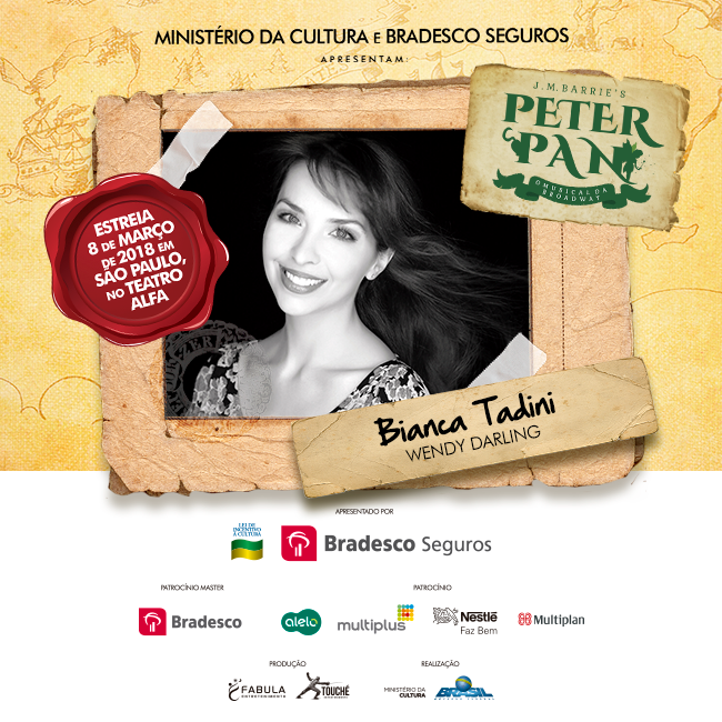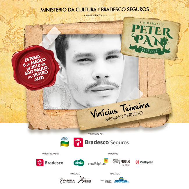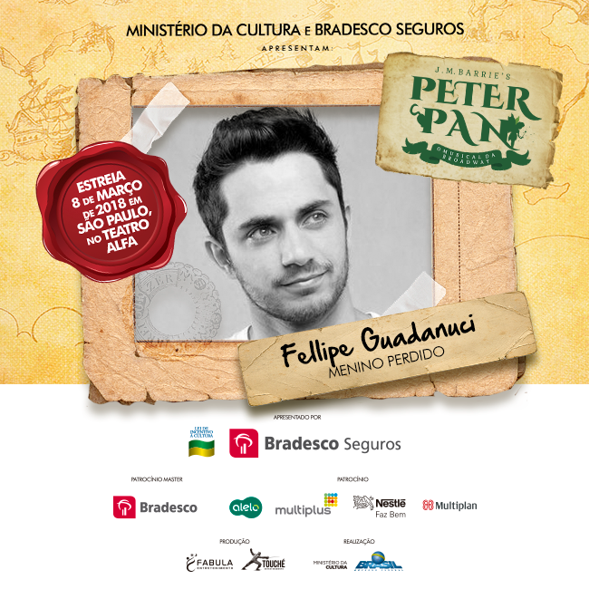 O clássico de J.M. Barrie, “Peter Pan”, chega ao Teatro Alfa em São Paulo, dia 08 de março, e está entre as estreias mais aguardadas de 2018. A produção, assinada pela Fábula Entretenimento, mesma de “Cinderella” – prestes a iniciar turnê nacional e com previsão de retornar à capital paulista em alguns meses -, tem a direção assinada por José Possi Neto, a direção musical por Carlos Bauzys, as coreografias por Alonso Barros, as versões por Bianca Tadini, os figurinos por Tanara Schönardie e o design de som por Gabriel D’angelo.