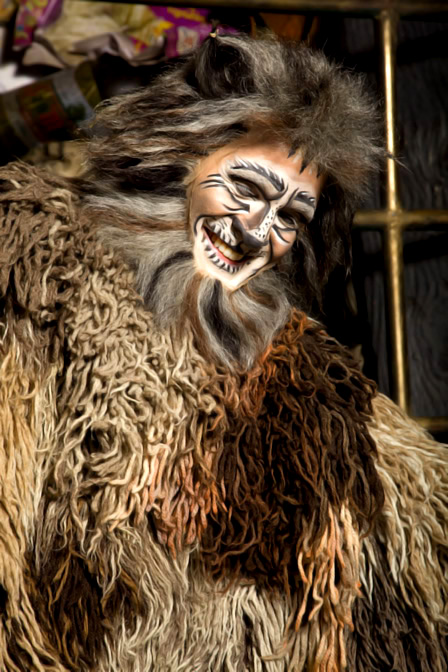 Saulo Vasconcelos: Os grandes desafios do meu personagem era dançar o primeiro número – que eu quase tinha um infarto do miocárdio (risos) -, aguentar o calor quando o ar condicionado do teatro não funcionava, porque era uma roupa muito, muito, grossa, pesada – uns sete a dez quilos, mas quando você via num contexto, ficava duas horas com ela, era muito cansativo e os ombros ficavam bem doídos – e o trabalho de corpo para se mover como um gato, um gato gordinho em cena, porque ele era bem gordinho.
