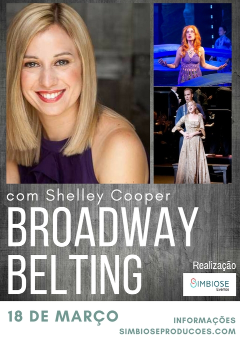 A instrutora vocal, diretora de palco e atriz especializada em teatro musical Shelley Cooper vem ao Brasil pela primeira vez a convite da Simbiose Eventos, de André Cortada e Rafael Reis, para ministrar dois workshops entre os dias 18 e 21. O primeiro, que acontece dia 18, leva o nome de “Belting for Musical Theater”, voltado ao canto para musical e suas técnicas, já o segundo chamado “There’s Truth in Singing”, está marcado para o dia 19, e trabalhará a interpretação no canto usando o trabalho de Arthur Lessac, um método que integra ferramentas orais, visuais, físicas e escritas para compor a performance. Nos dias 20 e 21, a profissional está disponível para aulas particulares.