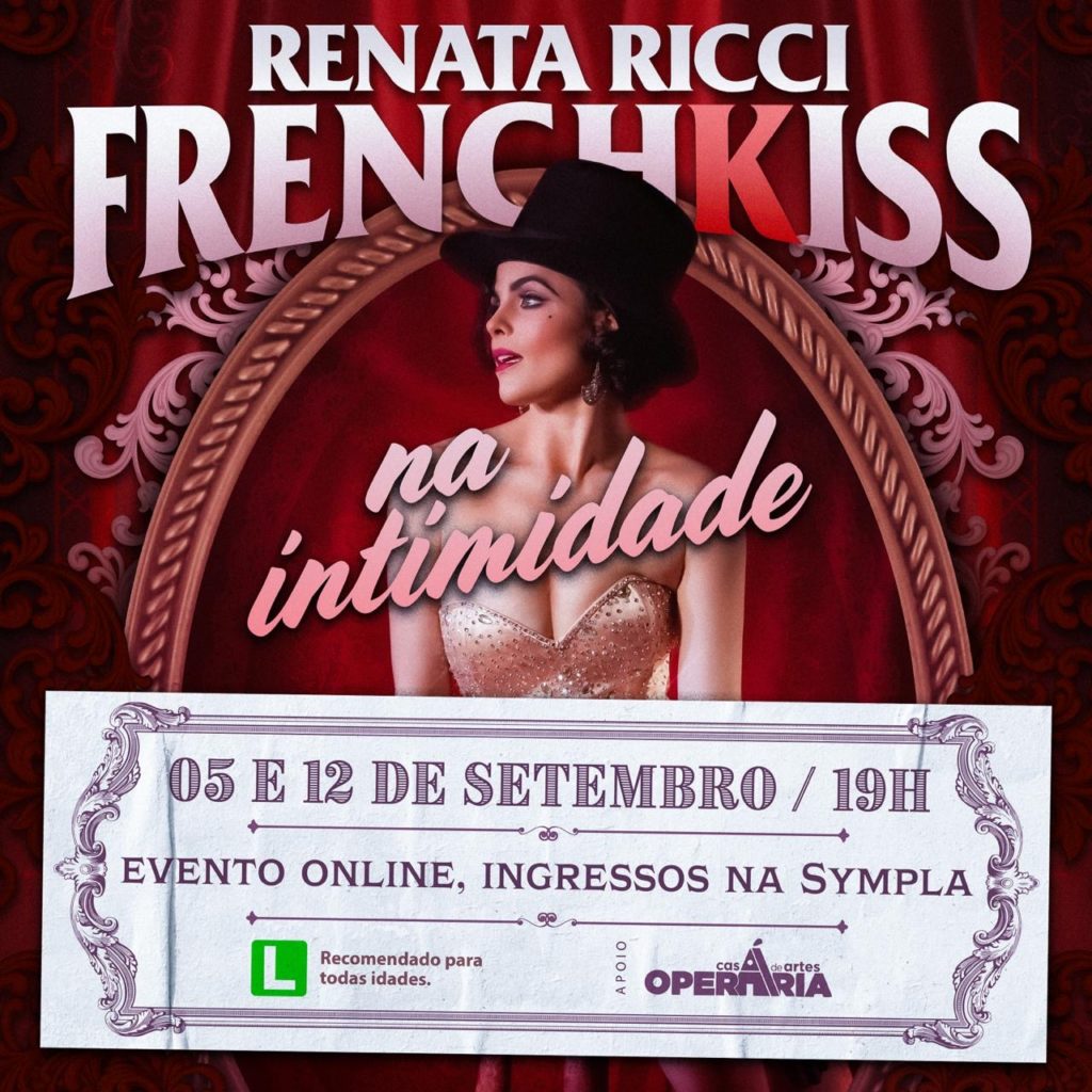 Se reinventar com ajuda da internet tem sido a máxima para os artistas em meio à pandemia. Impossibilitados de voltar à rotina dos palcos por conta das restrições vigentes para preservar a Saúde e prevenir o aumento dos números da Covid-19, muitos encontraram nas linguagem da internet a possibilidade de exercer sua profissão, sempre com os ajustes necessários. É o caso de Renata Ricci, que fará a partir do dia 5 uma “curta temporada digital” do seu espetáculo “French Kiss – Na Intimidade”.
