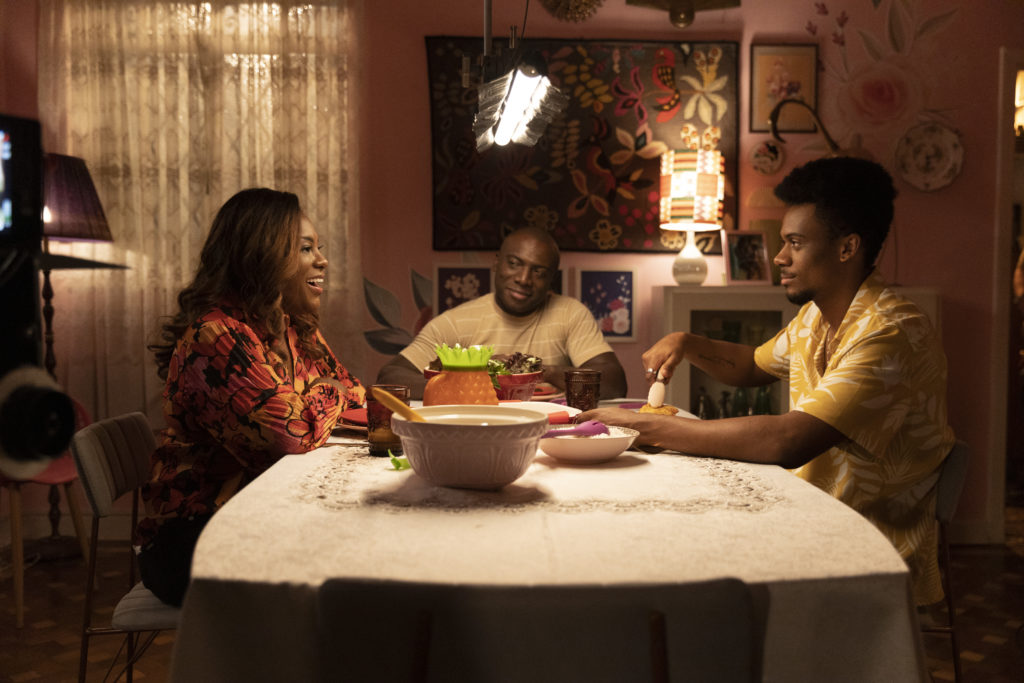 Miguel Falabella como Renato ao lado dos atores Guilherme Magon e Ester Elias em cena de “O Coro: Sucesso Aqui Vou Eu” – Foto: Disney / Divulgação Oficial